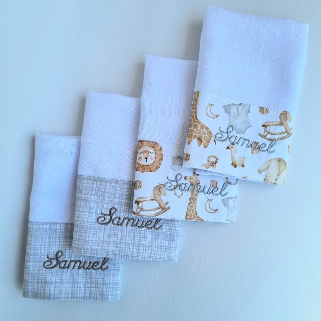 Os fios são duplos (gramatura 170 g/m2), 100% algodão, que fazem um tecido delicado garantindo a praticidade no dia-a-dia das mamães e um toque carinhoso na pele dos bebês.