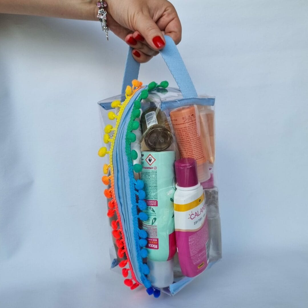 Excelente para usar nas viagens ou passeios ou mesmo para organizar seus itens em casa. Você pode guardar os itens do seu filho, suas maquiagens e até mesmo frascos grandes de hidratantes corporais ou shampoo.